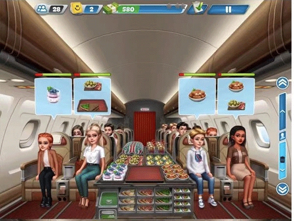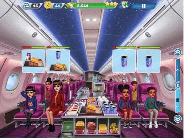 2、烹饪美味的餐点和甜点,并在这个免费的高度上瘾的时间管理烹饪游戏中将其用于商业航班;
