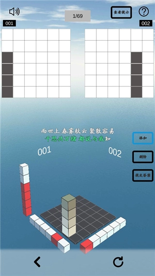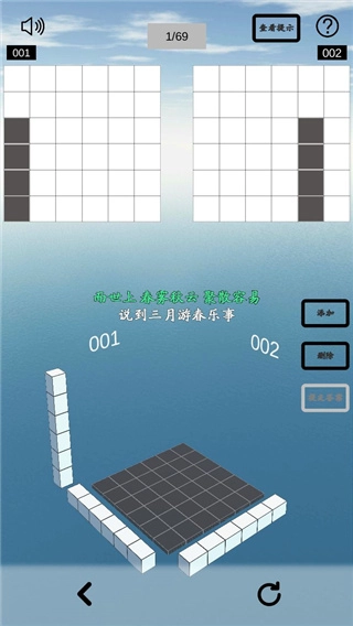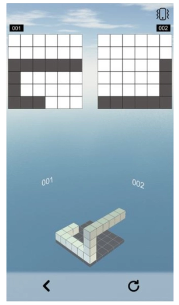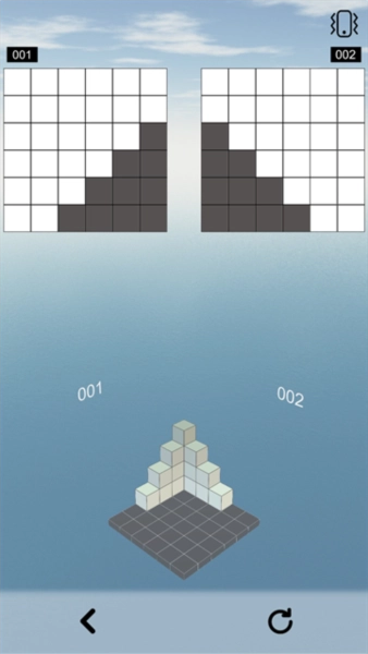 1、从不同角度观察几何立方体,借助01与02这两种差异化视角,快速完成绘制并闯关。游戏设有海量小关卡供您解锁,对玩家的观察力与创造力提出了极高考验,尽情投身挑战吧。