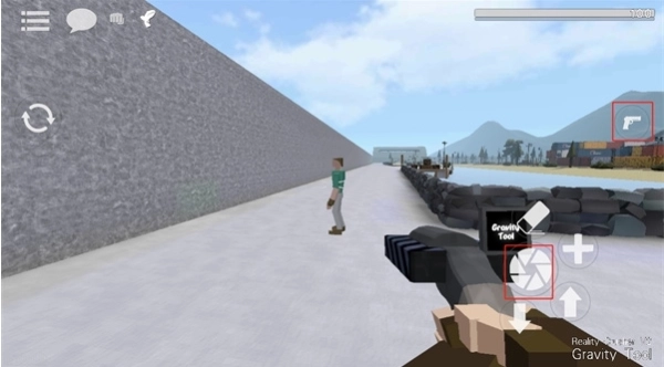 4、点击右侧的“手枪”按钮即可获取枪支,这会使角色切换至持枪状态,通过中心位置能够进行开枪操作,而“+”号按钮则可用于添加新的靶子角色。