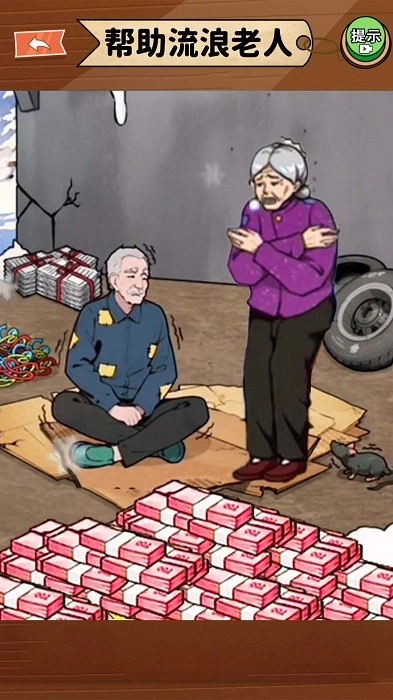 《帮助流浪老人》是一款兼具趣味性与教育意义的生活改善类游戏。在游戏中,玩家的核心任务是通过一系列互动操作,帮助关卡里的流浪老人逐步改善生活环境。例如,点击画面中的钞票图标,即可为老人解决当下的生活难题,助力他们迈向更美好的生活状态。 游戏的每一个关卡都拥有独特的主题与玩法机制,玩家需要仔细观察场景细节、深入思考问题本质,才能完成解谜挑战。丰富的剧情故事贯穿于各个关卡之中,不仅为游戏增添了叙事性,更考验着玩家的观察力与问题解决能力,引导大家在趣味体验中学会关注他人需求。
