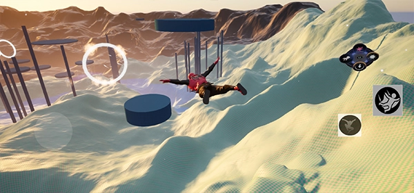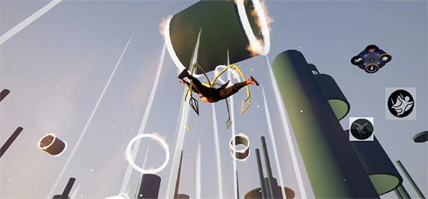 3、右下角设有三个键位,依次为跳跃键、滑翔键和变形键,其中滑翔键用于控制我们在滑翔时的方向。