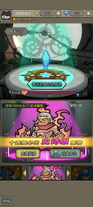 5、除了基本的玩法之外,玩家们还可以获取到免费抽史诗级魔物。