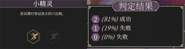 此时,我们想要从精灵姐姐身旁潜行通过,需要进行两次判定,而目前的成功的概率是50%。