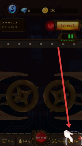 1、在游戏界面中,按照箭头提示点击右下角Car按钮,进入车辆相关功能页面,开启车辆系统操作。