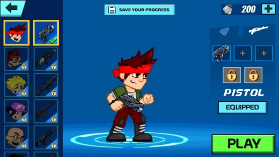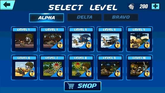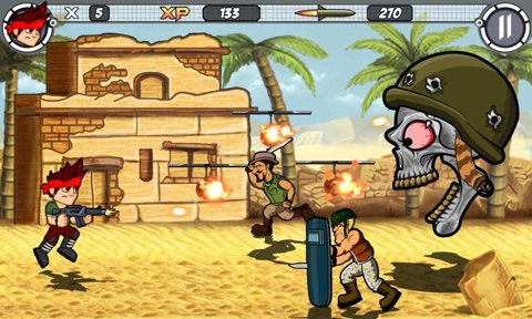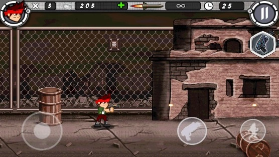 这是一款非常刺激的动作射击游戏,玩法比较简单,和《合金弹头》类似。玩家将操控角色,通过虚拟摇杆来控制移动方向和射击角度,点击开火键消灭敌人,也可以通过跳跃来躲避敌人的子弹攻击。