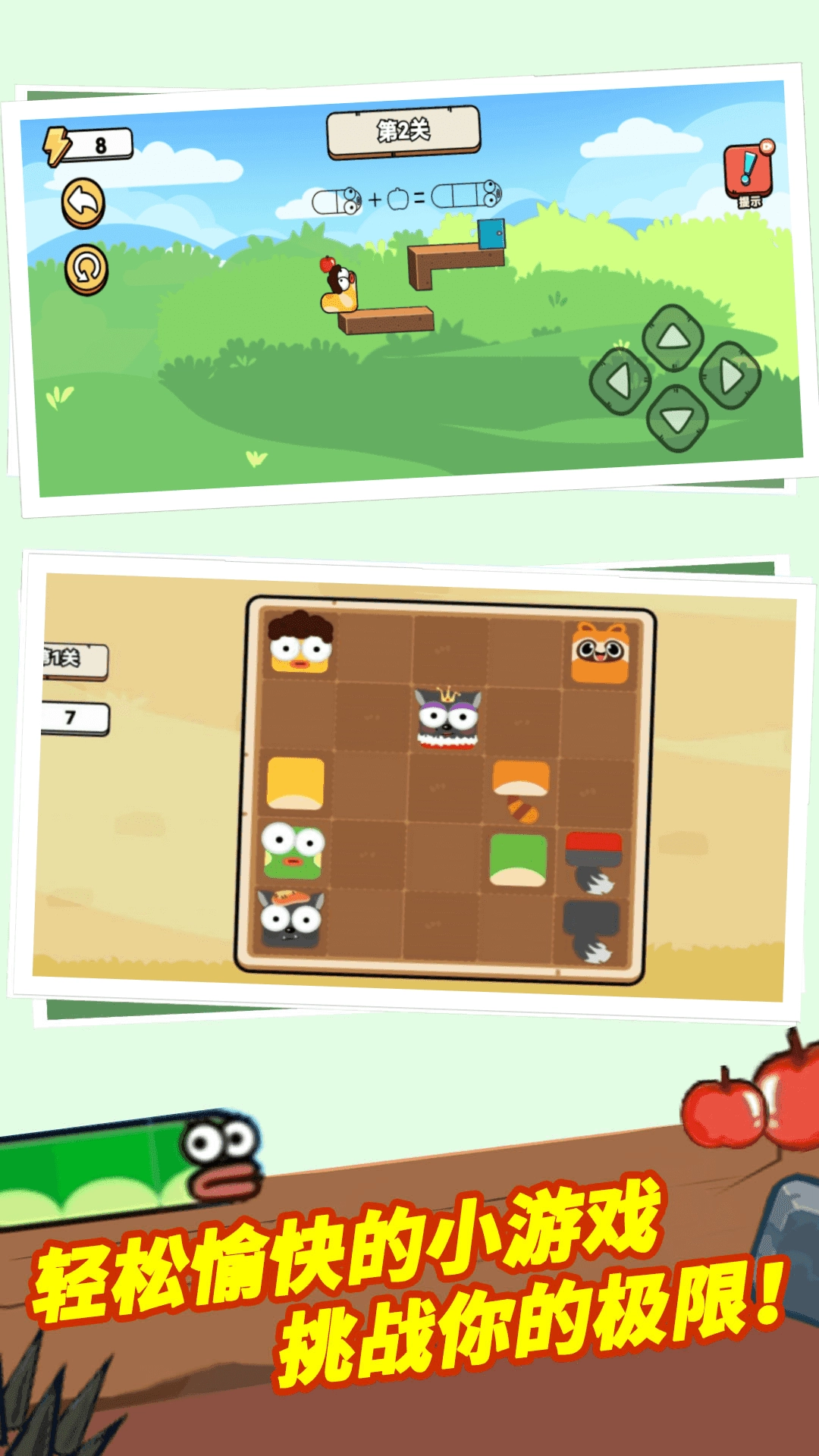 2、每吃掉一个苹果,小蛇的身体就会变长一些,这样它就能到达更高的地方了。