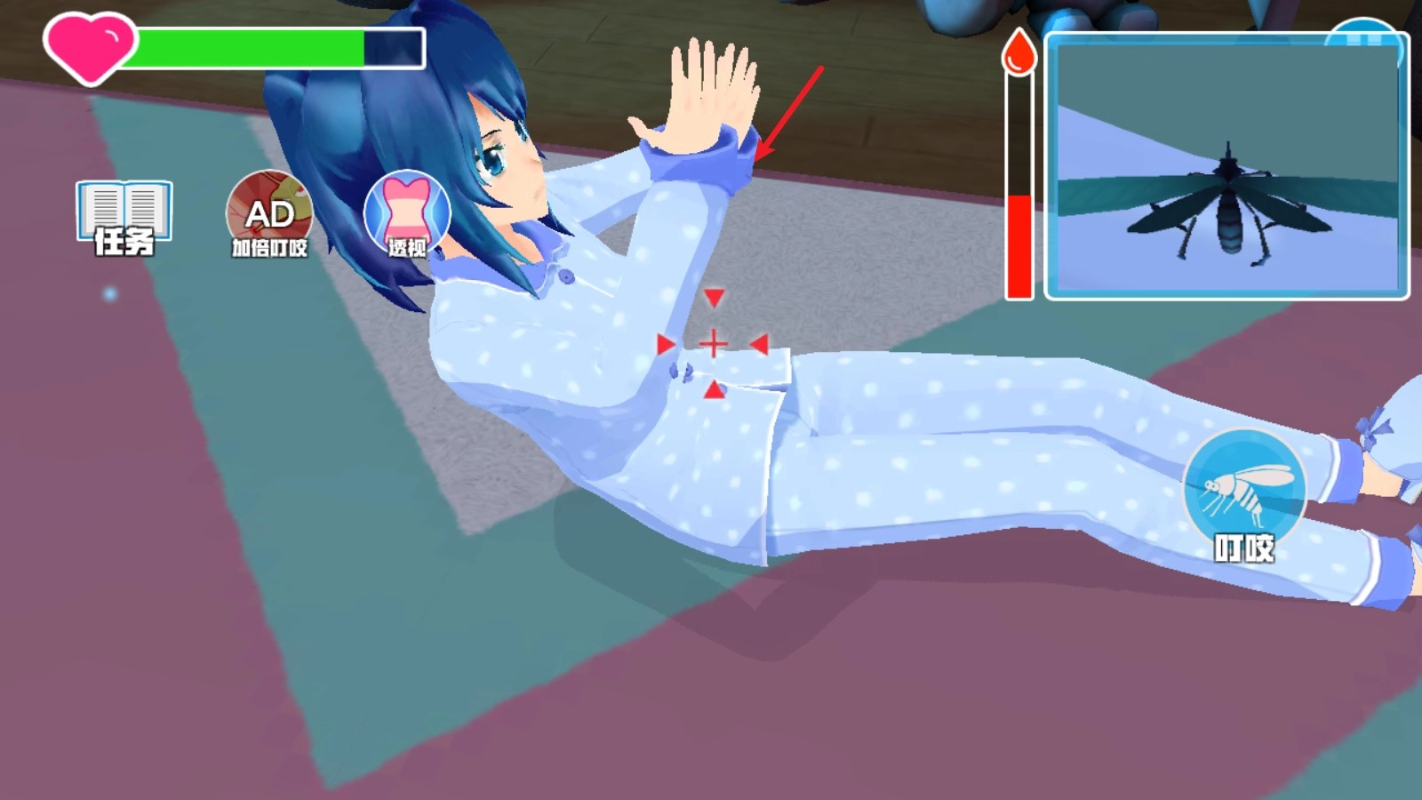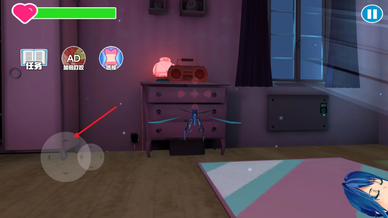 2、左侧的摇杆控制蚊子移动,拖动屏幕就可以转换视角。