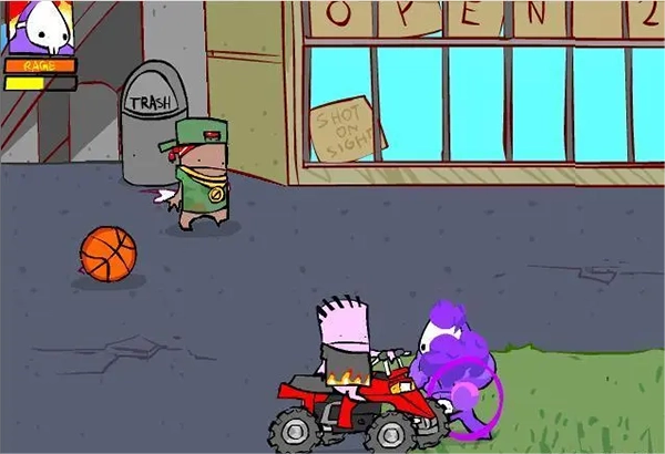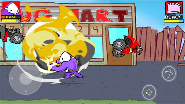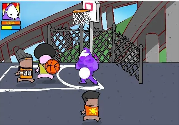 有两个小孩开车过来了!被车撞到会受伤流血!可以用篮球把车打爆,或者用旁边的垃圾桶,还能用风车拳!提示:猛砸那个垃圾桶能提高爆气的速度。