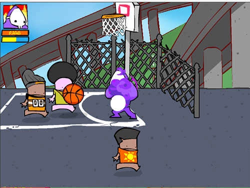 虐待人家中学生!提示:持篮球时,按↑+A(S),只要你在篮框左边,不管怎么投都会中哦!