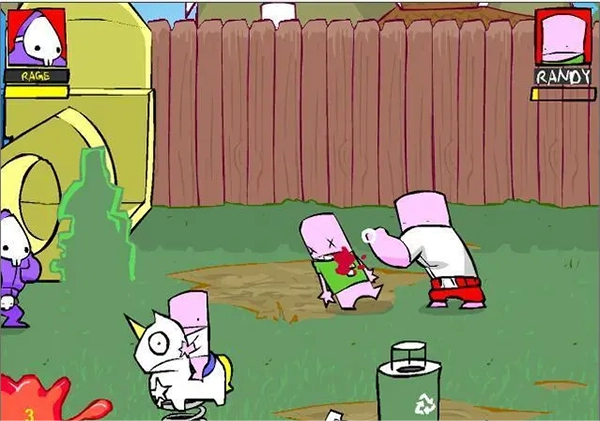 注意:那两个忍者小孩特别厉害,能突然从高处跳下来把你踢倒!他们的血量也比普通小孩要多!推荐使用风车拳应对。其中有一个忍者小孩是开着车的哦!(提醒一下,小区路上有个油桶可以用来助力)