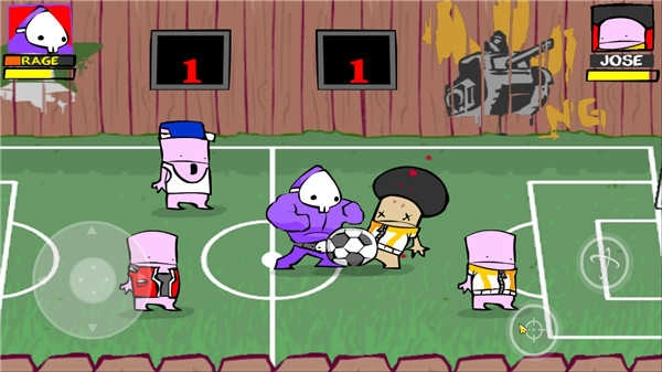 提示:可以把球踢进球门,还会加分(分数在背景上)。当你持足球时,小孩会铲你的球,被铲倒会伤血!