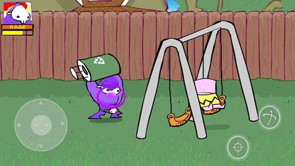 又有不少小朋友过来啦!里面有个穿黑色西装、系着蝴蝶领结的小家伙(血量比普通小朋友要多),他会用一把玩具枪朝你射击(子弹居然是马桶搋子?),要是被打中可是会掉血的!对了,停在右上方的那台除草机还能当作炸药来用呢!