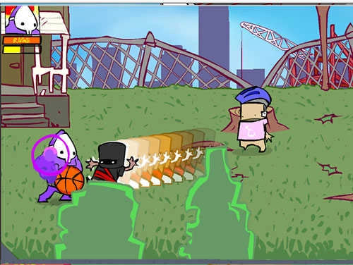 提示:可以把小孩打、撞飞。注意:戴头盔的小孩有攻击力!被撞到会伤血!