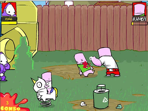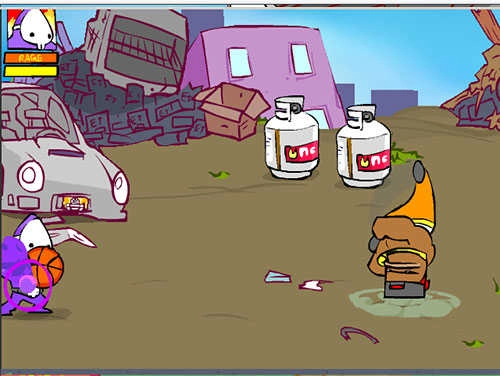 到了幼儿园,看到一位幼儿园老师也在“猛揍小朋友”,甚至还打死了一个。这家伙就是第一个BOSS,血量和玩家差不多,建议使用风车拳或者拳脚大连环,直到把它打死。幼儿园里有三个油桶可以当作炸药使用,还有一个绿色垃圾桶,猛揍它能够提高爆气率。提示:有个小孩骑的木马会随机发生变化。