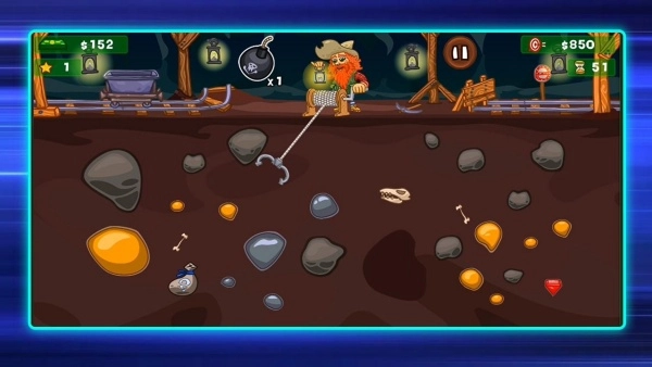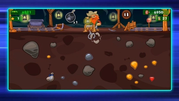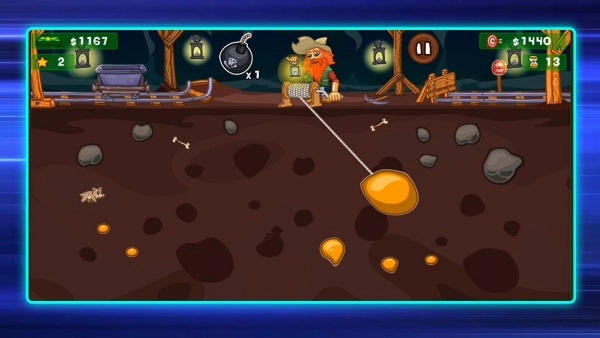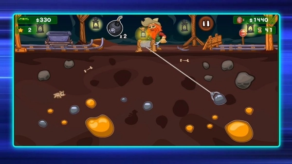 1、目标是收集到规定数量的点数,需在矿井里挖掘宝石、金银以及奖励袋这类资源,与此同时要躲开危险的炸药桶,防止冒险活动失败。