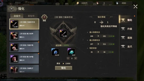 装备养成:强化+镶嵌+黄金套,战力飙升!