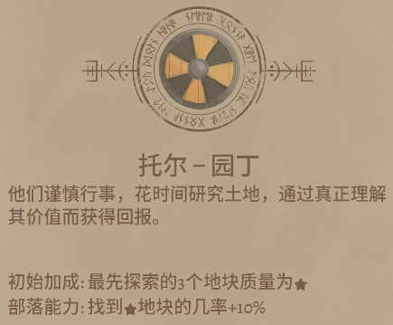 部落能力:找到★地块的几率+10%