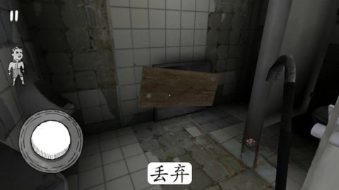 3、游戏操作界面的左下角设有移动控制摇杆。右下方的小人图标用于控制角色的蹲起动作。界面中间的小白点具备拾取物品与开门的功能,当它停留在可拾取的物品上方时,右侧会浮现手形图案,点击该图案就能拿起物品。物品拾取完成后,屏幕下方会出现丢弃图标,玩家可通过点击此图标随时放下手中的物品。