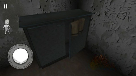 8、游戏里可以藏身的地方包括大衣柜,打开柜门走进去再关上就能隐藏。矮柜子同样能用来躲藏,靠近时屏幕右上角会出现可进入的提示,点击后就能钻进柜子里,这个柜子在二楼。
