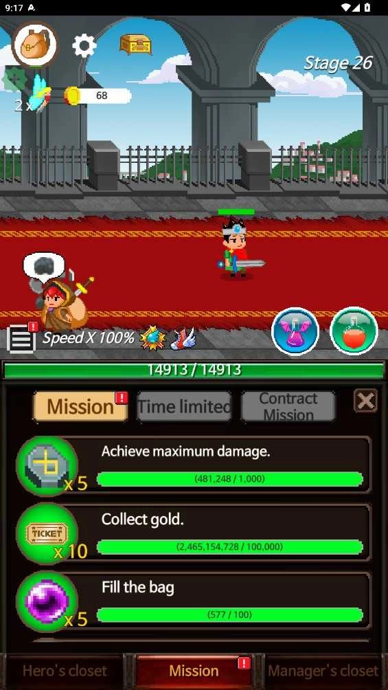 2.进入之后第一回合即将开始,勇士会砍向怪物,其中会掉落很多材料。