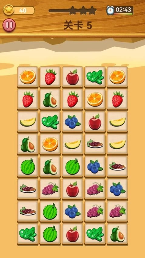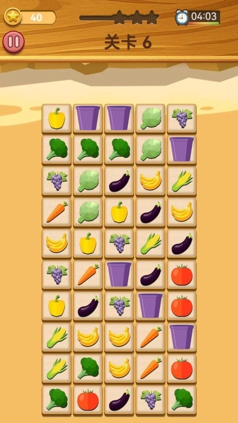 欢迎来到《连连看大闯关》!这是一款经典又好玩的休闲消除游戏,游戏内各类元素方块排列得整整齐齐,所有元素都取自日常里清新的小物件——草莓、苹果、胡萝卜……这里没有花哨的炫目特效,只有温润舒服的配色,搭配着轻柔的点击声。