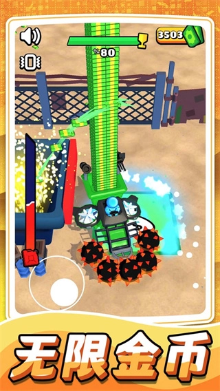 收割机的操控方式简单又灵活,不需要复杂的操作技巧,就能轻松控制它的移动、转向和收割动作,让玩家可以专注于升级策略和暴击僵尸,不同水平的人都能快速上手融入。