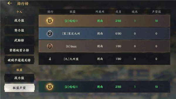 3.联盟宝箱:联盟每周会依据联盟声望和联盟拍卖获取元宝,盟主可按照成员的贡献度或武勋来进行分配。