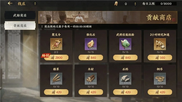 4.联盟商店:成员可使用联盟贡献在商店中兑换资源、预备兵、技能升级道具等资源。