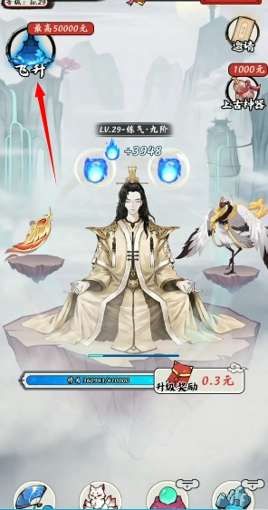 1、进入游戏后点击左上方的“飞升”按钮