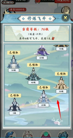 2、在飞升的界面里能够领取达到特定等级的游戏奖励