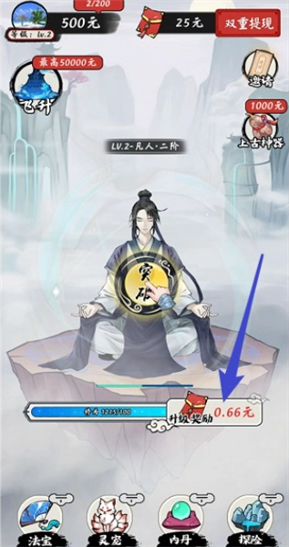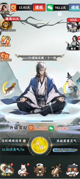2、玩家能够借助游戏内的丹药炼制玩法提升灵气等级,进而获取现金红包奖励;