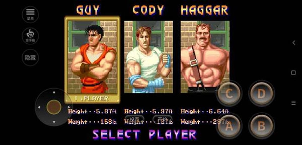 这款游戏里共有三位角色,分别是穿白色服装的科迪、一身红色装扮的凯,还有大力士哈格。他们除了拥有通用技能外,每个角色都具备各自独特的技能。