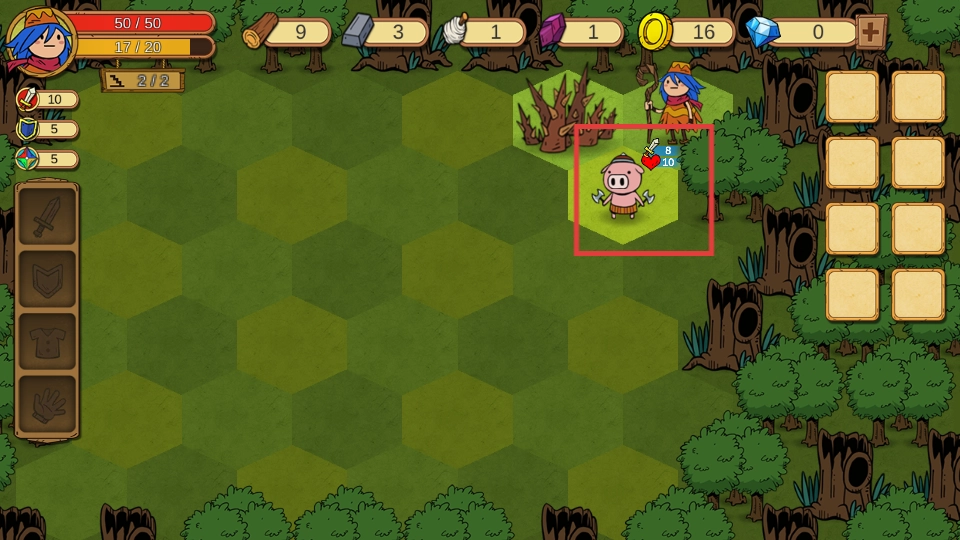 2、与敌方小猪战斗,消灭敌人,获取经验和资源,推进游戏进程。