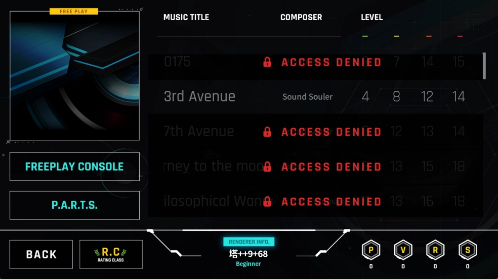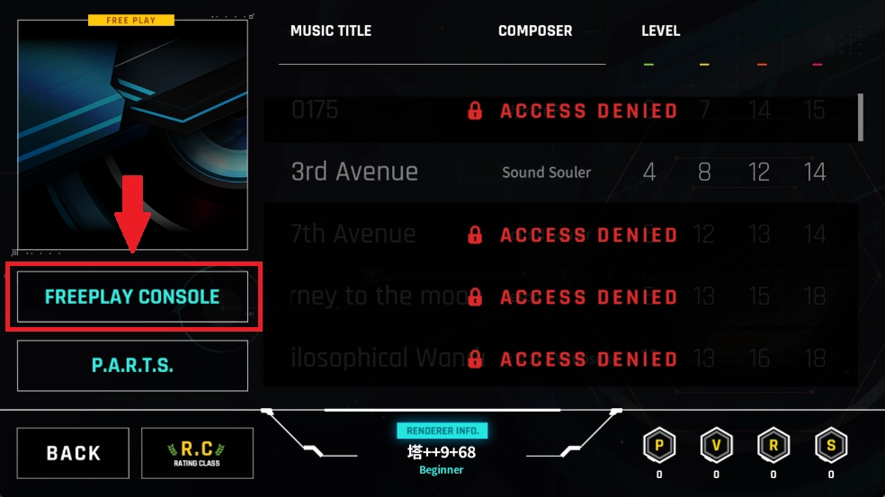 4、在界面左下角的P.A.R.T.S区域,你能够更换打歌界面的按键样式、滑轨设计以及点击特效等各类视觉元素,以此来提升游戏体验。
