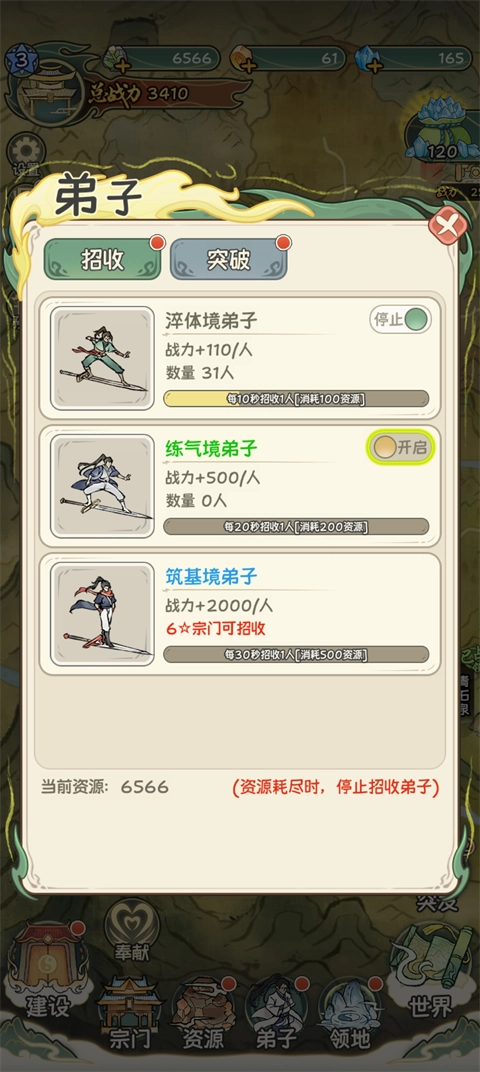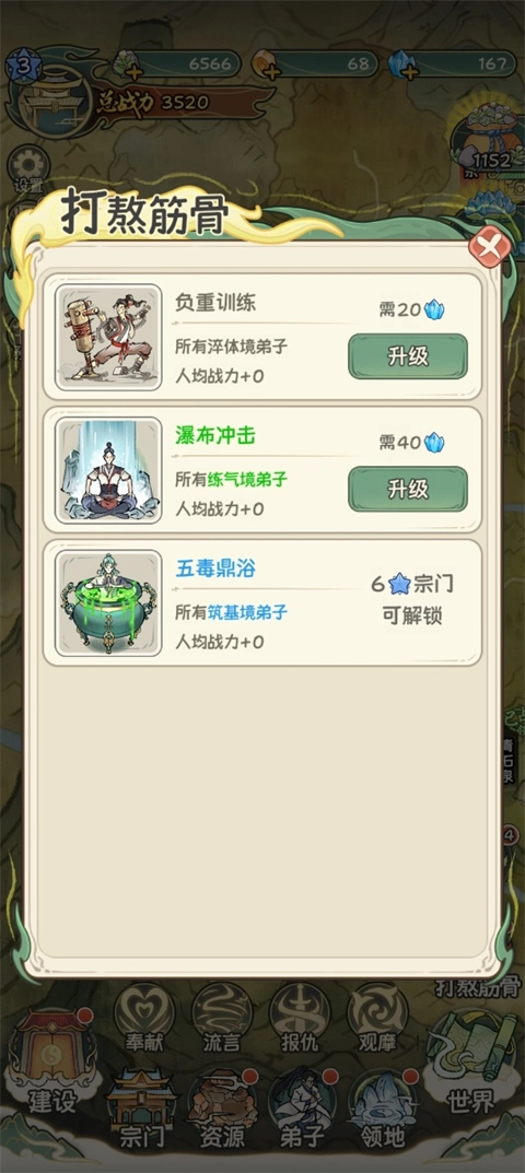 5、打理宗门要用心:招揽弟子、培养外门弟子、安抚内门长老、科学规划建设、搜集藏经阁功法残卷。