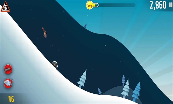 2、道具辅助:收集火箭、雪怪这类道具能够实现加速冲刺或破坏障碍的效果,而企鹅、老鹰等动物伙伴则可以为玩家提供飞行或者滑翔的能力。