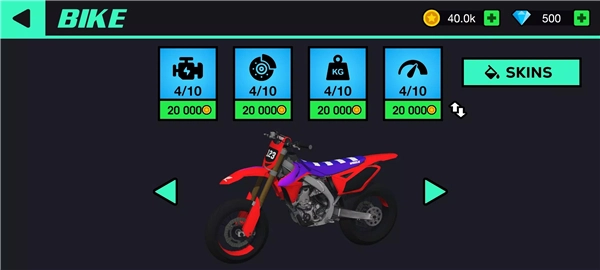 2、游戏操作同样简便,左侧按钮负责方向操控,右侧的↑按钮能让摩托车抬起车头,下方的两个按钮分别对应刹车键和油门键。