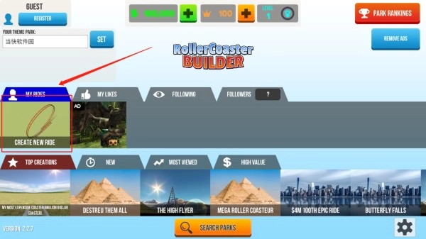 2、点击图示位置可以创建新的过山车
