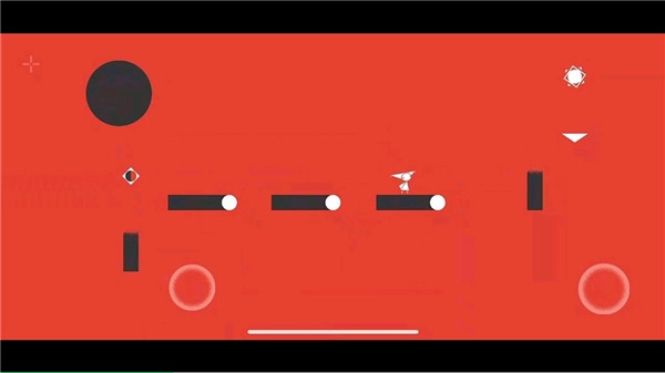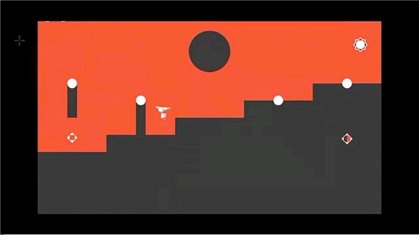 6、第六关,先向右跳跃,中间三个台阶是动态的,注意把控跳跃间距,激活下方的白圈,等场景变化后跳回中间位置,再向右上方跳跃就能通关了。