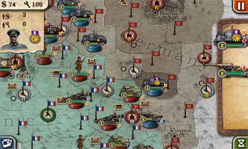 《世界征服者2》是一款军事题材的策略战争游戏,以二战时期多国对抗为背景,包含战役、征服等多样化模式供玩家自由选择。游戏内设计了带有网格线的战场,玩家可在其中部署坦克与士兵,同时配备详尽的新手教学关卡引导操作,战斗玩法具备高度自由度。