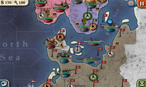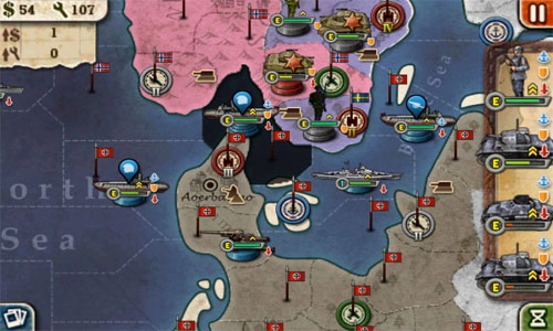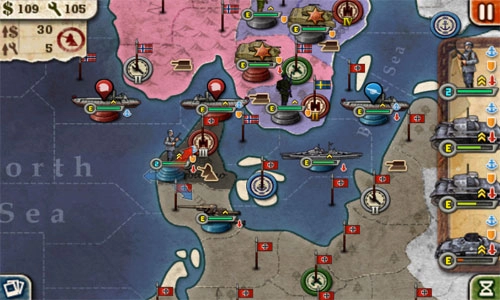 装甲部队成功攻克丹麦,招募一批步兵协助残血的装甲部队防守,战舰驻守军港协同防御;
