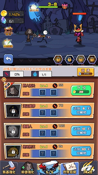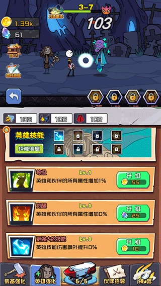 4、进入“英雄强化”界面,提升主角等级,解锁更多技能,增强个人作战能力。