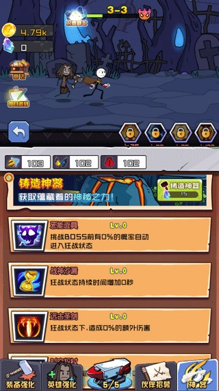 5、在“神器”界面中,消耗钻石打造强力神器,助你轻松秒杀强大BOSS。
