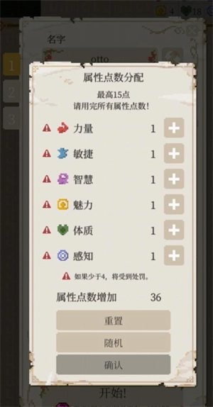 游戏里的角色具备六个属性,按从右到左的顺序依次是力量、敏捷、智力、魅力、体质和感知。进入游戏后,玩家能够对这些属性点进行简单的分配。