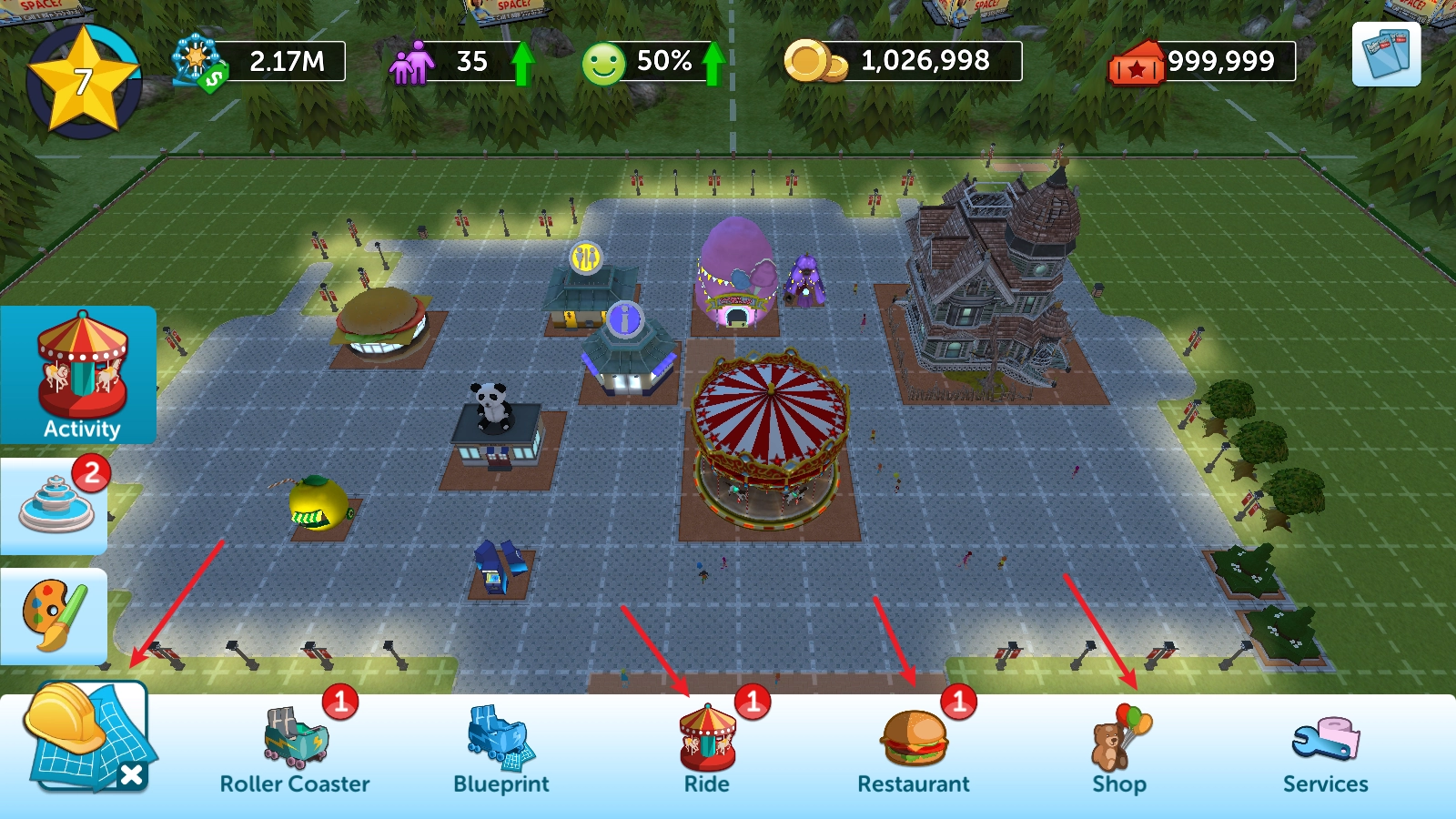 3、对游乐园进行升级改造,以此吸引更多游客前来游玩,从而为你创造更丰厚的收益,让你赚取更多的金币!