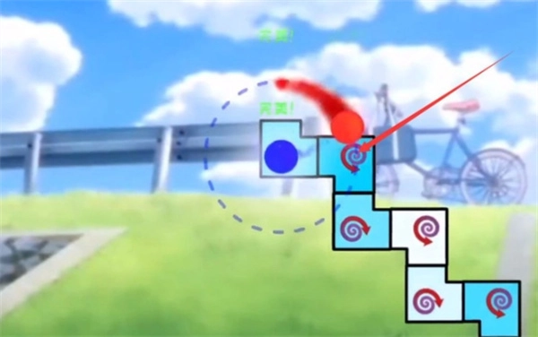 1、第一关:你得把红蓝小球移到方块通道里,接着跟着节奏往前走。注意别碰到减速蜗牛,及时绕开就好,操作挺简单的,没什么难度。