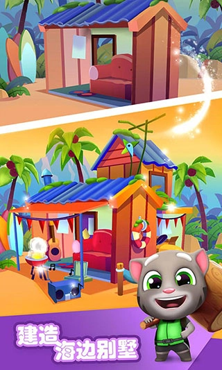 汤姆猫的摩托艇游戏内玩家要躲避障碍物并收集所有金币,驾驶自己定制的摩托艇飞驰,建造完美的海滨别墅。