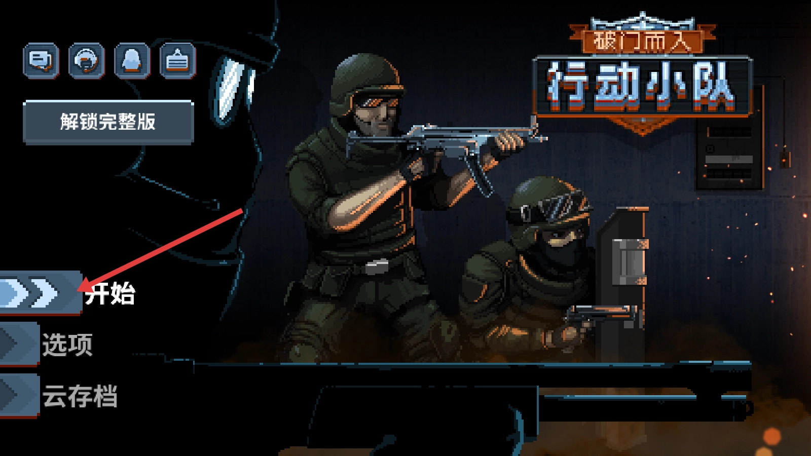 1、点击【开始】,进入《破门而入-行动小队》游戏,开启战术射击冒险之旅。