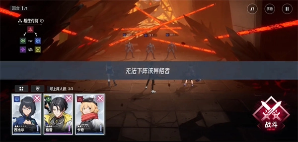 1、一共可以上阵三个角色,记得好好选择,组成合适阵容。