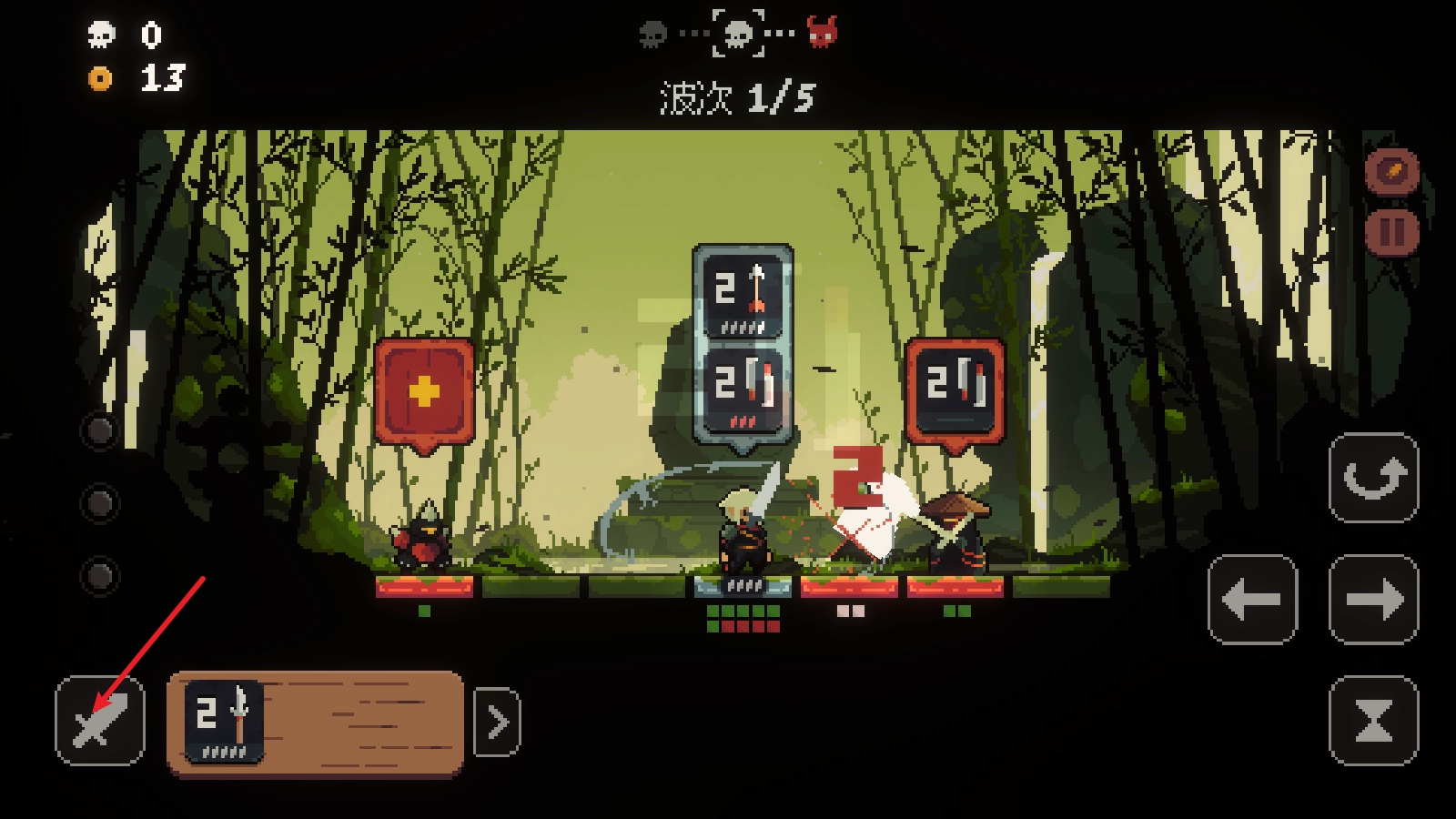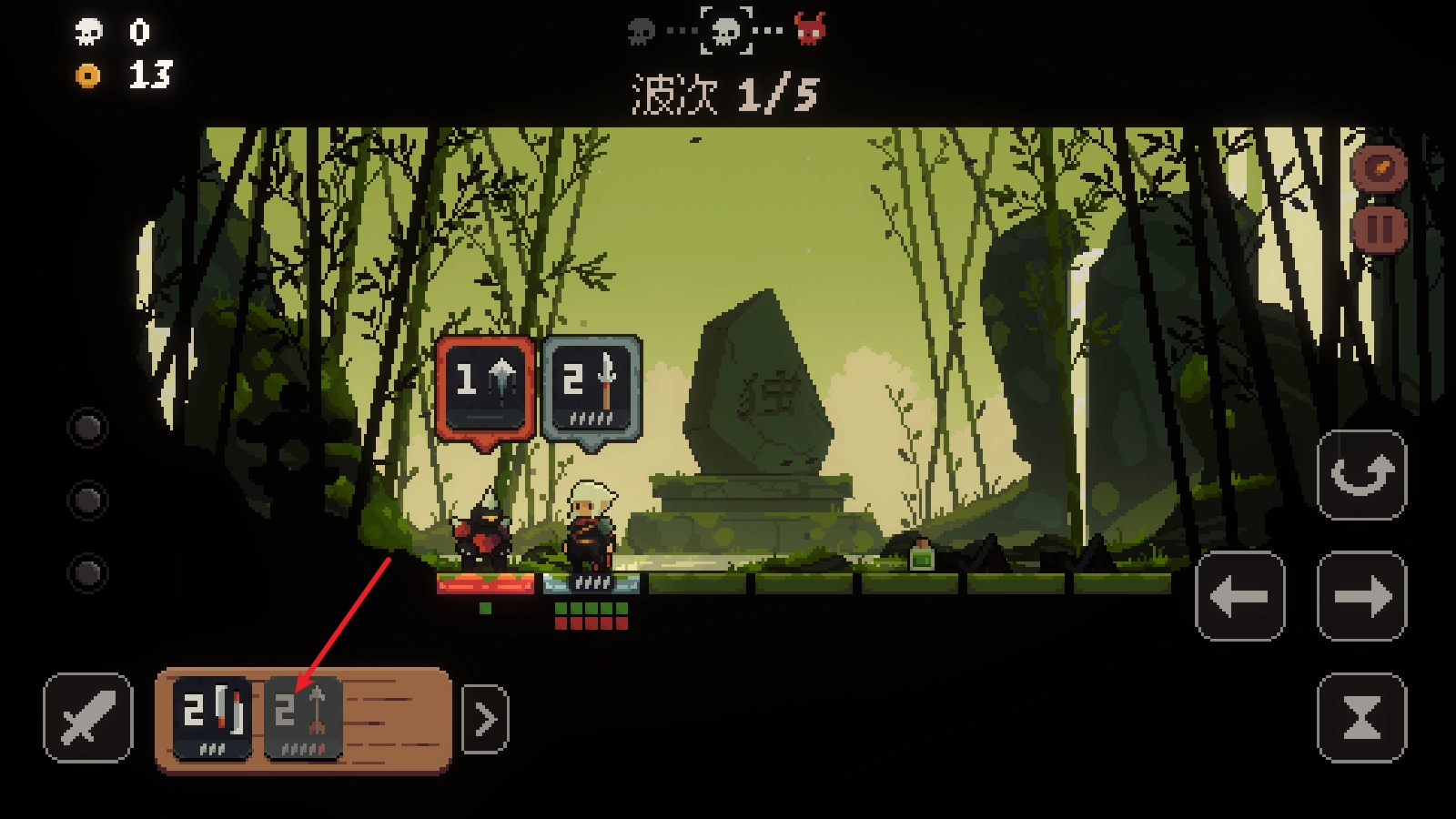 5、角色下方的绿色格子代表生命值,只要通过攻击把敌人的生命值打至零,就能成功将其击败。